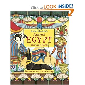 Henry is all about Egypt these days, and I’m all about getting Henry to focus more and put more detail into his drawings, so this book happily satisfies both of us. There are all the classic Egypt icons — pyramids, eye of Horus, Egyptian gods — as well as some more obscure things (who needs just any old Sphinx when you can have a Hieracosphinx, an Androsphinx, and a Kriosphinx?). Each drawing takes you step-by-step through how to do it (like Ed Emberley’s Make a World) and throws in a few little facts, as well as artistic hints. Henry has drawn some pretty impressive stuff, I have to say.