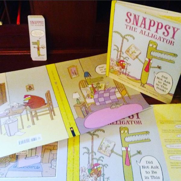 Are you on Instagram? I am…now! I finally entered the current decade and got a smartphone, so now I can be on Instagram. You can follow me if you’re interested in seeing what so far is mainly photos of my dogs. To celebrate my newfound Instagrammatical status, I’m doing a giveaway: rare, limited edition proofs of the Snappsy the Alligator (Did Not Ask to Be in This Book) case cover (hard cover of the book) and jacket. Suitable for framing! Also a copy of the book, which I’ll sign if you want me to, and as many bookmarks as you need (as long as you don’t need, like, 1000). Check out the giveaway post on Instagram for info on how to enter — I’ll draw the winner next Tuesday morning (Sept. 27th, 2016).